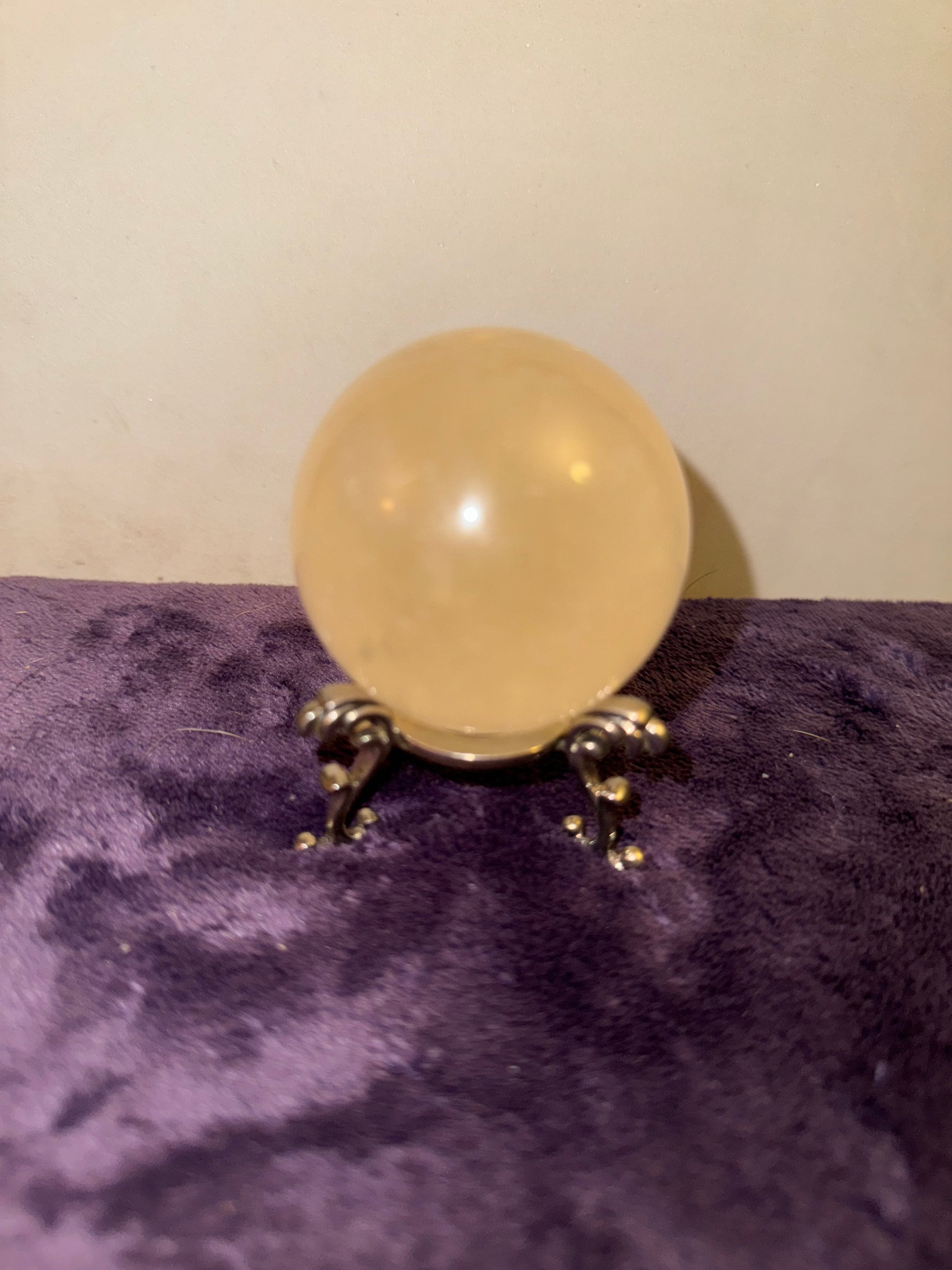 Whether you choose the clearer or the honey version of this beautiful Iceland cow site he will be adding an amazing piece to your collection. Both Have beautiful asterisms In more than one area on each sphere. If you move the pieces in just the right direction, you can make the stars touch creating an amazing lightning type flash. Iceland calcite has a long amazing history well worth the time to research. Choose the piece of your choice by letter. A being the clear,B Being the honey. A. 54.5mm. Weighing 8.2 ozs. B. 53.6 mm weighing 8 ozs.