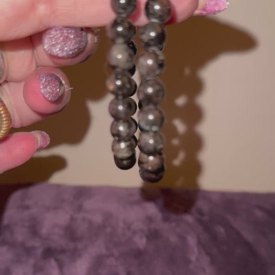 Arfvedsonite w/ Gem Grade Garnet Inclusion 8mm Bead Bracelets
