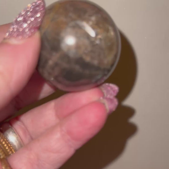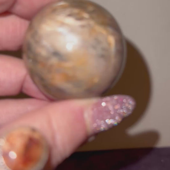Black Moonstone, spheres with Rich, dark brown and brilliant orange Sunstone inclusions. Definitely giving a dark sunset vibe. Brilliant chatoyant areas covering either choice. A stone you can spend many hours focusing on with always something new to find. The beauty of these pieces will stand out in any collection or make the perfect gift for someone’s special. The stone of new beginnings make these spheres, the perfect offering for any occasion. If you need these items to be shipped As a gift, please drop us a message with the recipients, full name and mailing address and whether you would like a note included as we offer drop shipping at no extra charge.