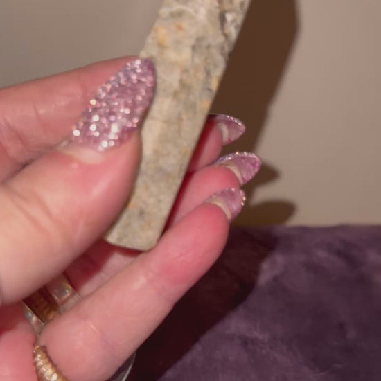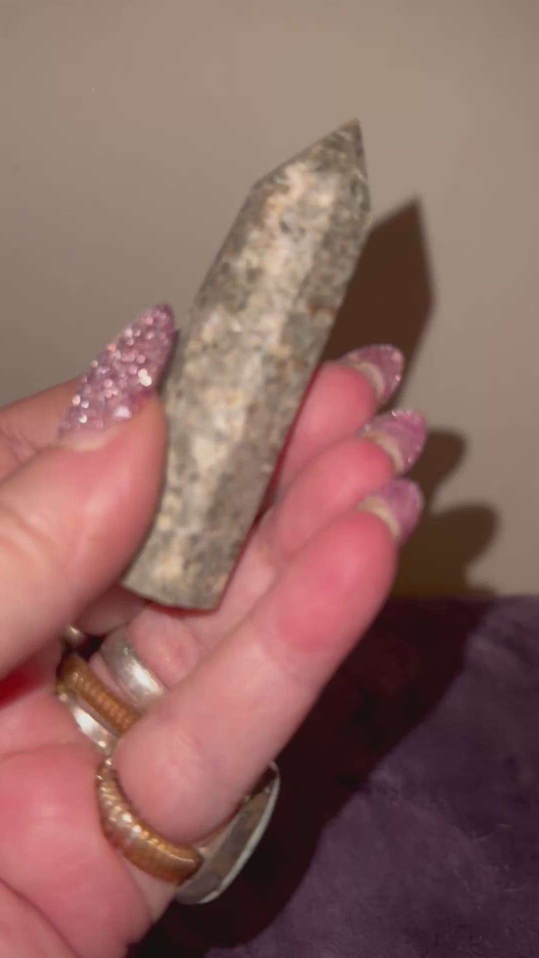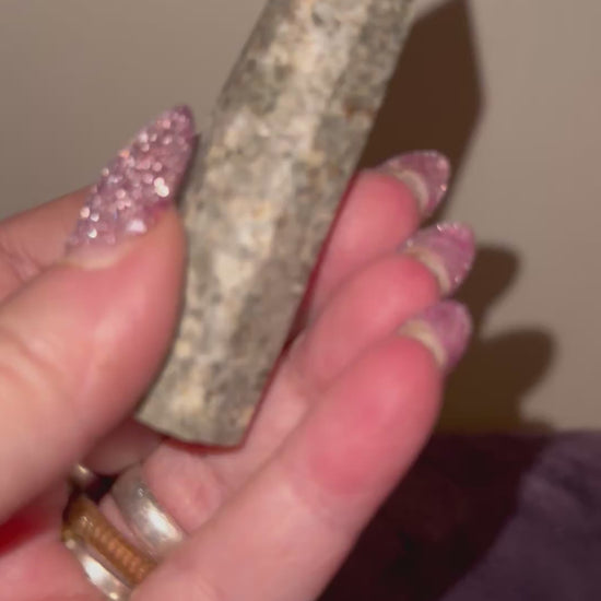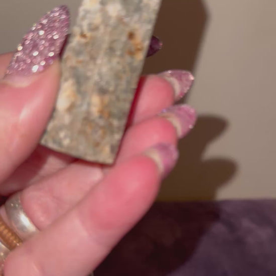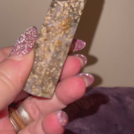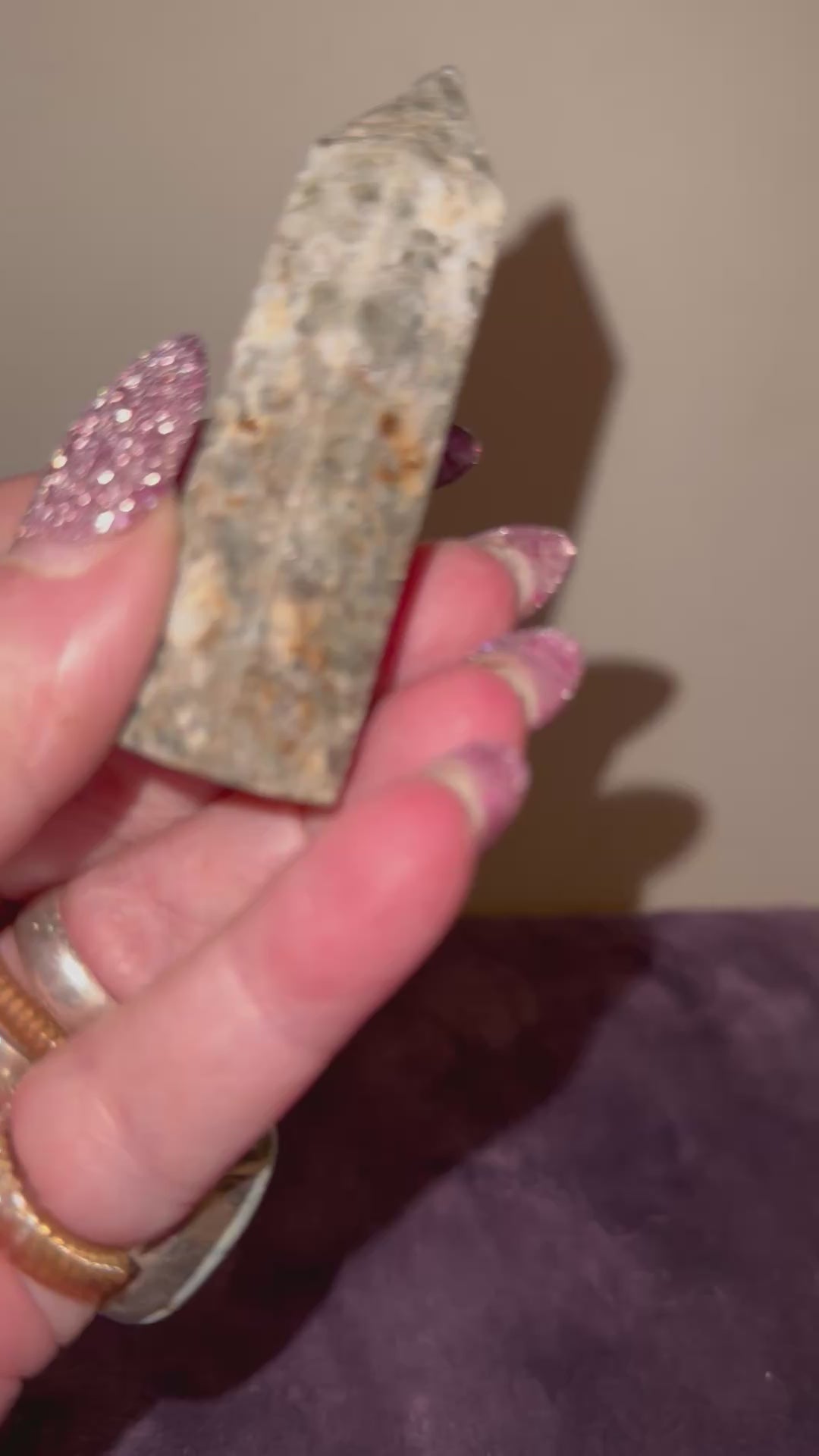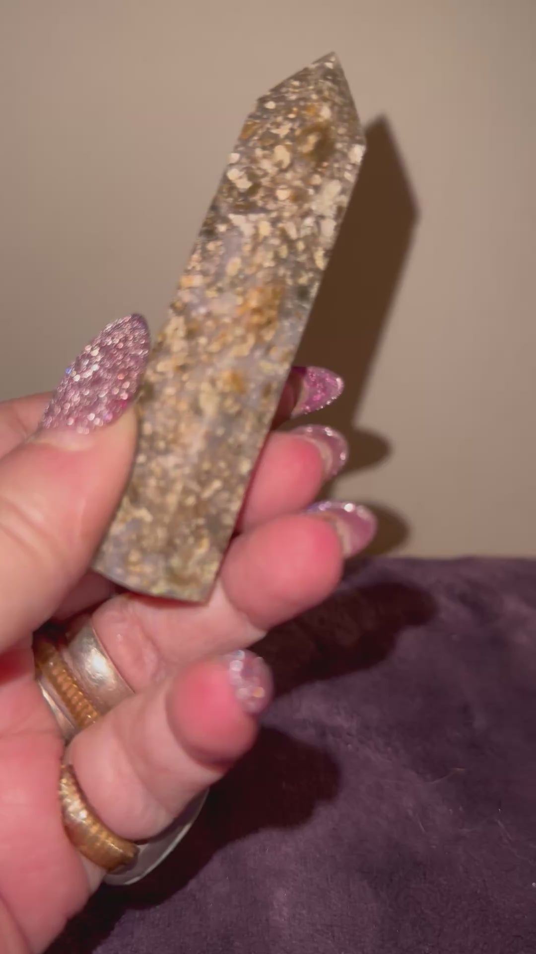 The Mesmerizing lesson of how these Brazilian Fossilized Coral Agate towers became is why we feel that any lover of the rare, history, ocean life, crystals, or learning how one tiny microscopic organism can become great coral reefs over millions of years. These towers are not only beautiful, but they can capture Hours of your time, searching out the tiny fossils Called Coral Polyps that are now visible to the naked eye due to the cutting of the coral and the polishing process in making carvings such as these towers. The story of how these great coral reefs develop is worth the read. Over many generations, these tiny organisms drop their exoskeletons that create colonies and eventually create a coral reef. When we look at coral agate, as it is found in the ocean now , due to the erosion of water and sand, we see a more smooth outer surface. When these pieces of coral are carved and polished, they expose the tiny organisms inside that created the great coral reefs. Many hours have been spent here in our shop just admiring all of the different shapes of the organisms that can be found. I would imagine if we had enough time those tiny organisms could be identified by their appearance As there are so many different shapes to find. The material itself is absolutely beautiful, but adding the ability to view the history of how they became makes them that much more special. All crystals are a piece of our history, but if you appreciate being able to see the scientific process over generations, this crystal is for you or for any crystal or fossil lover if you’re looking for a gift. Please choose your favorite buy letter. A. 2.75” x 1”. Weighing 2 ozs. B. 3” x 1”. Weighing 2 ozs. C. 3.5” x 1 1/8” . Weighing 2.5 ozs. D. 3.75” x 1”. Weighing 2.5 ozs.