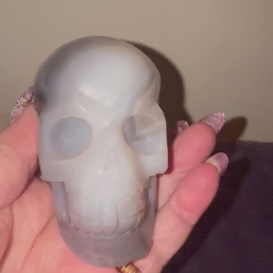 This lovely multi tone Druzy Agate Skull with a flower inclusion as well as a sugary , druzy temple area is sure to dress up any collection. Druzy Agate Is known for being a fairly expensive material by weight but this beautiful skull carving as we think you’ll find has been priced very reasonably for all to enjoy. Weighing in at 14.8 ounces a dense piece for its size.3.5” x 2.5” x 2”.