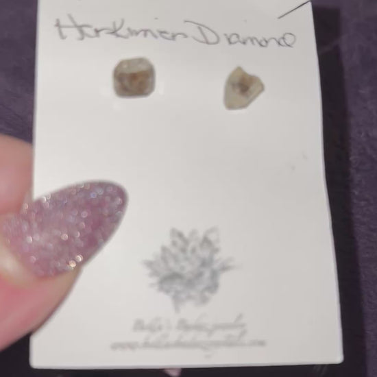 Lovely Raw Herkimer Diamond Stud Earrings. s925 Post. UV reactive. Works nicely with any outfit. Casual or formal. HQ Herkimers are known for their beautiful rainbows and the dark earthy inclusions. If you happen to be purchasing these as a gift , please visit our Miscellaneous Collection as we sell a nice selection of gift boxes at a very affordable price.