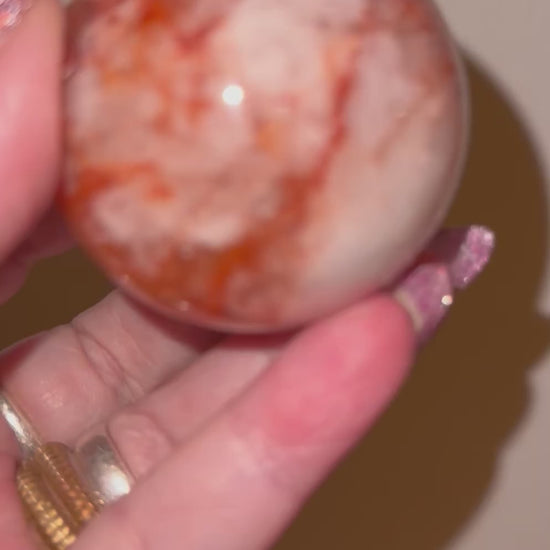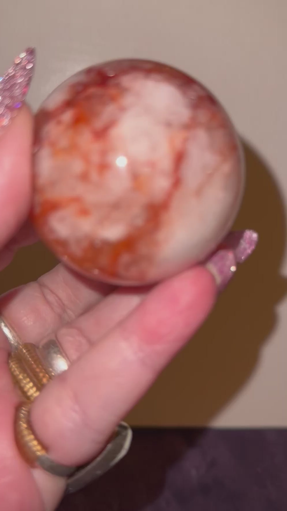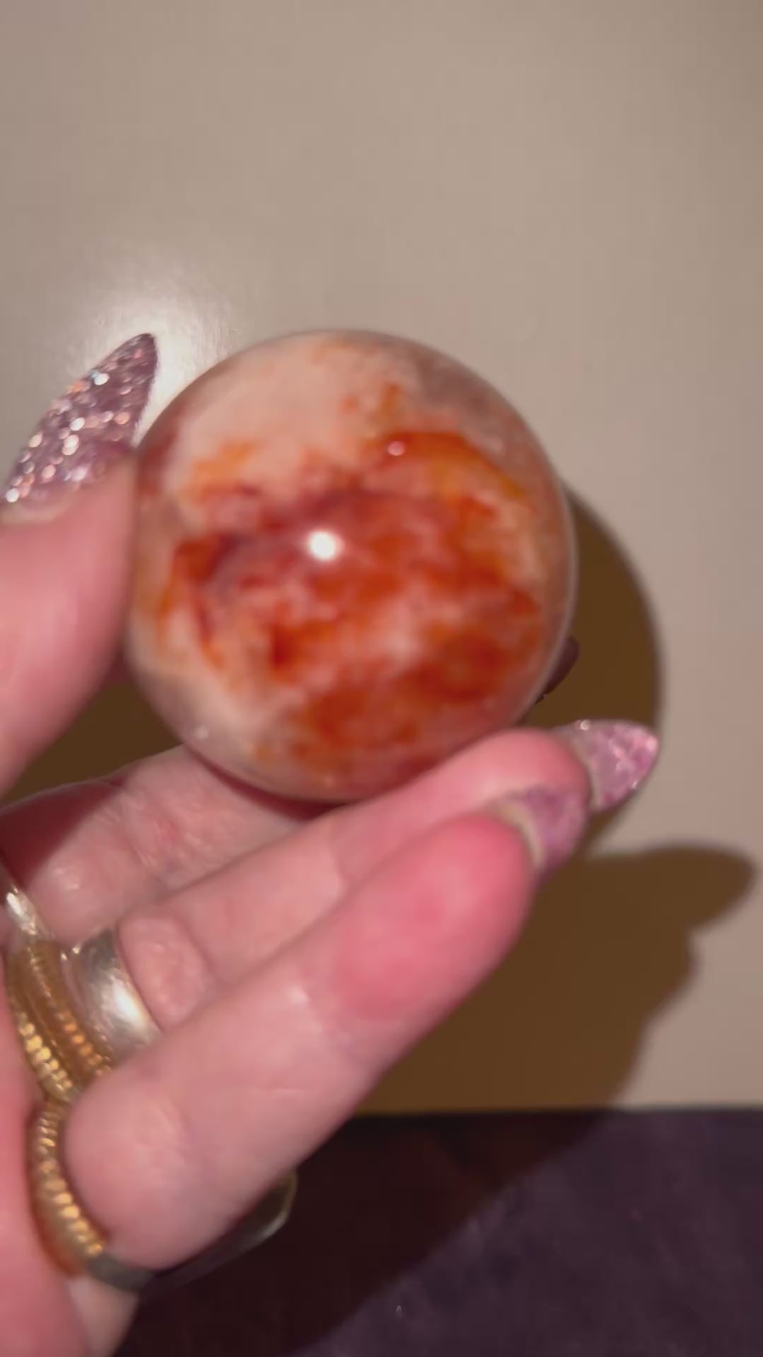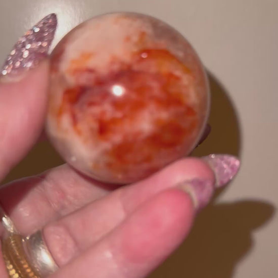 HQ Dark Red and Clear Fire Quartz ( Hematoid Quartz ) Spheres. High quality typically refers to the vividness of the fiery red, orange, or yellow hematoid inclusions in clear quartz. The more opaque, the crystal, the lesser quality.Full of Rainbows and flash representing its name perfectly. 2 beautiful pieces to choose from. A. approximately 2” and B. approximately 2.2 “. Either choice is sure to enhance any crystal collection or make the perfect gift for someone special. Should you need to send this item to a friend? Please drop us a message with their name and mailing address and if you would like a note included as we offer drop shipping at no extra cost.