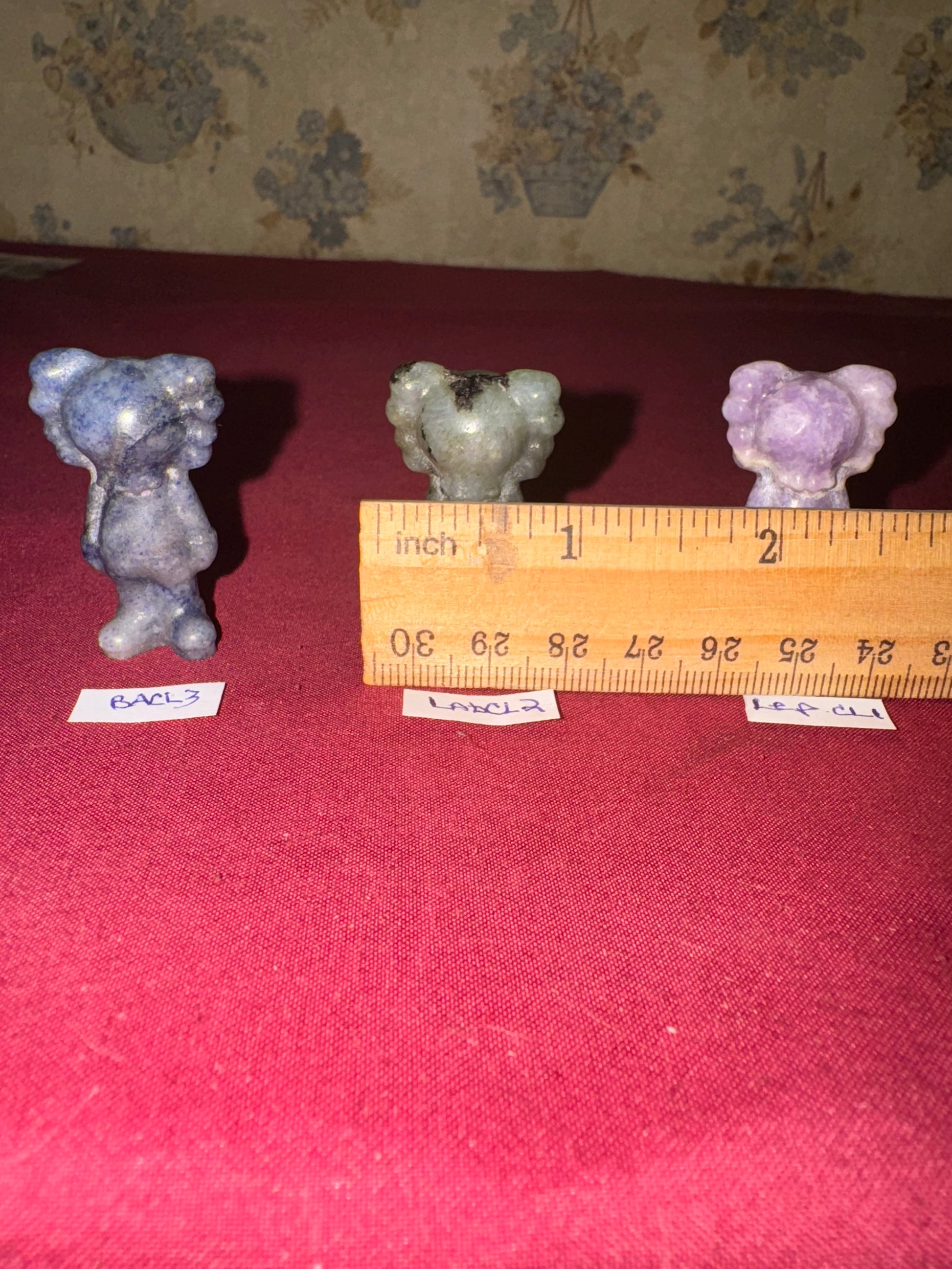 Sweet mini size KAWs Companion crystal collectibles. Approximately 1 1/2” x 1”. Available in Purple Lepidolite, Blue Aventurine and Labradorite. Only one of each material available. Purchase your favorite now.