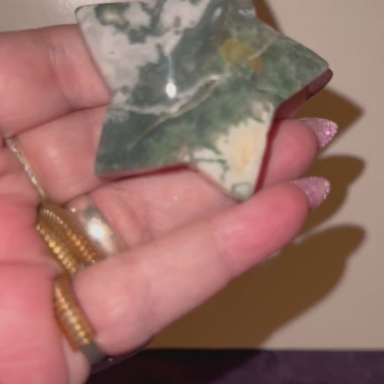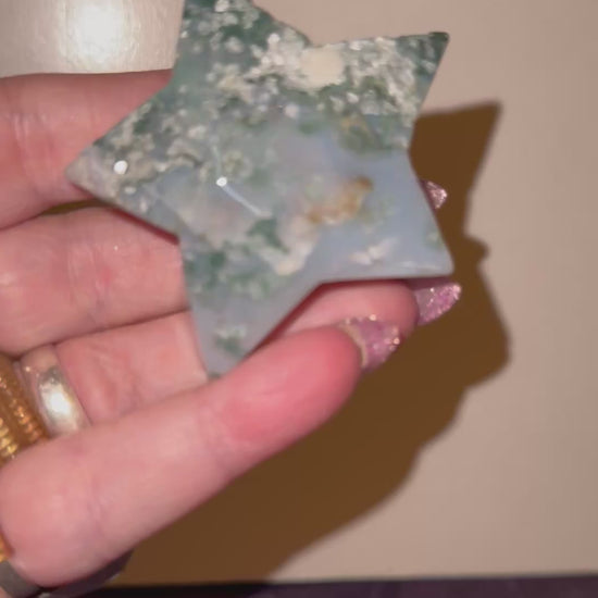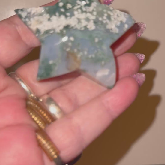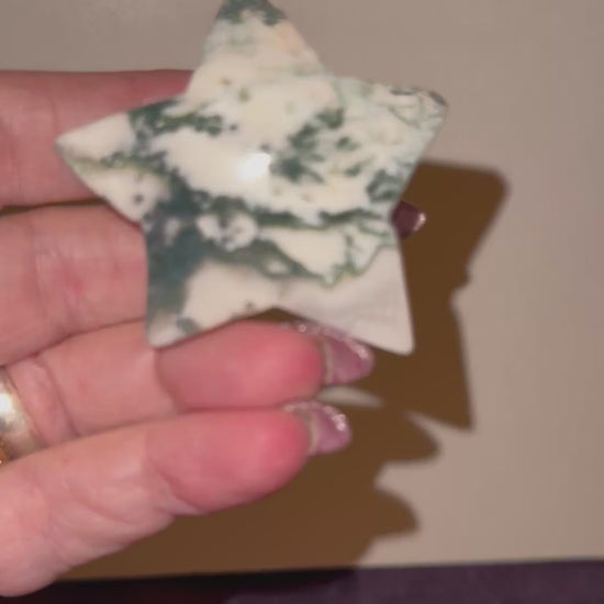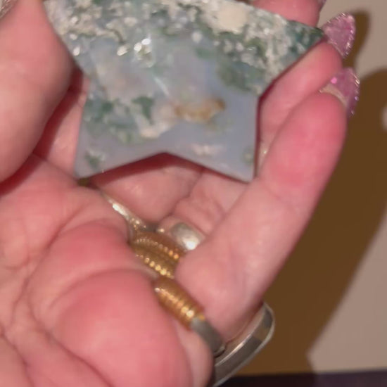 Bring Nature To Your Collection With These Forest Green Golored, Translucent Moss Agate Stars with Their Mosslike Inclusions. Delve deep into each piece and find something different with each viewing. Bring this grounding , beauty and peace to anyone as a gift for all occasions. If you need any item shipped as a gift to an address other then yours , send us a message with the recipients full name and mailing address and if you’d like a note included as we drop ship at no extra cost.