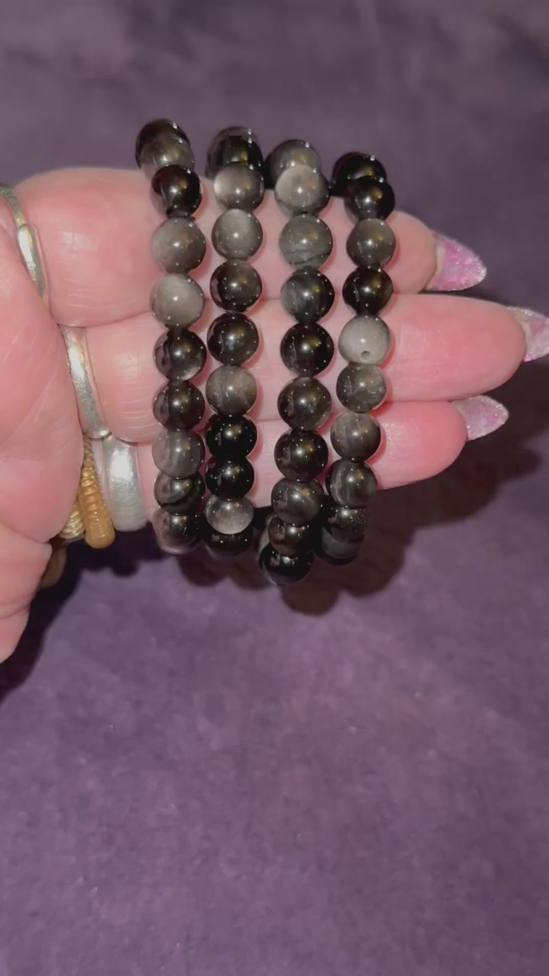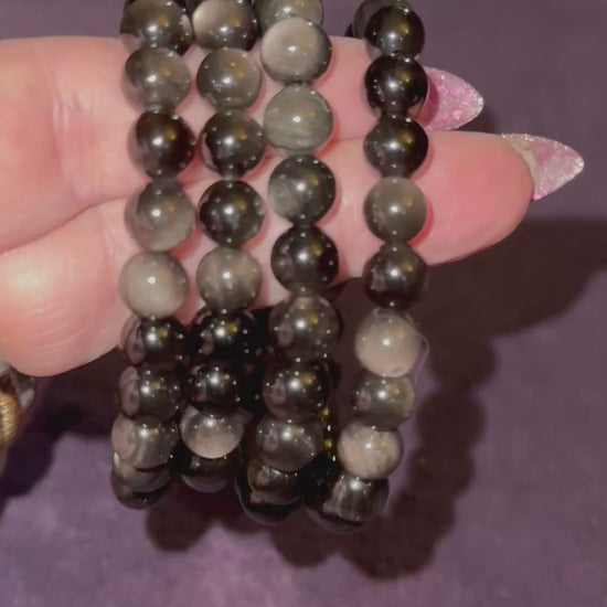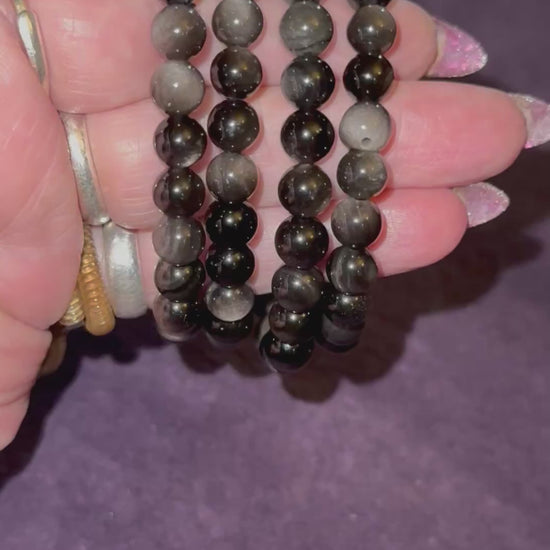 Silver Sheen Black Obsidian 8mm Bead Bracelets