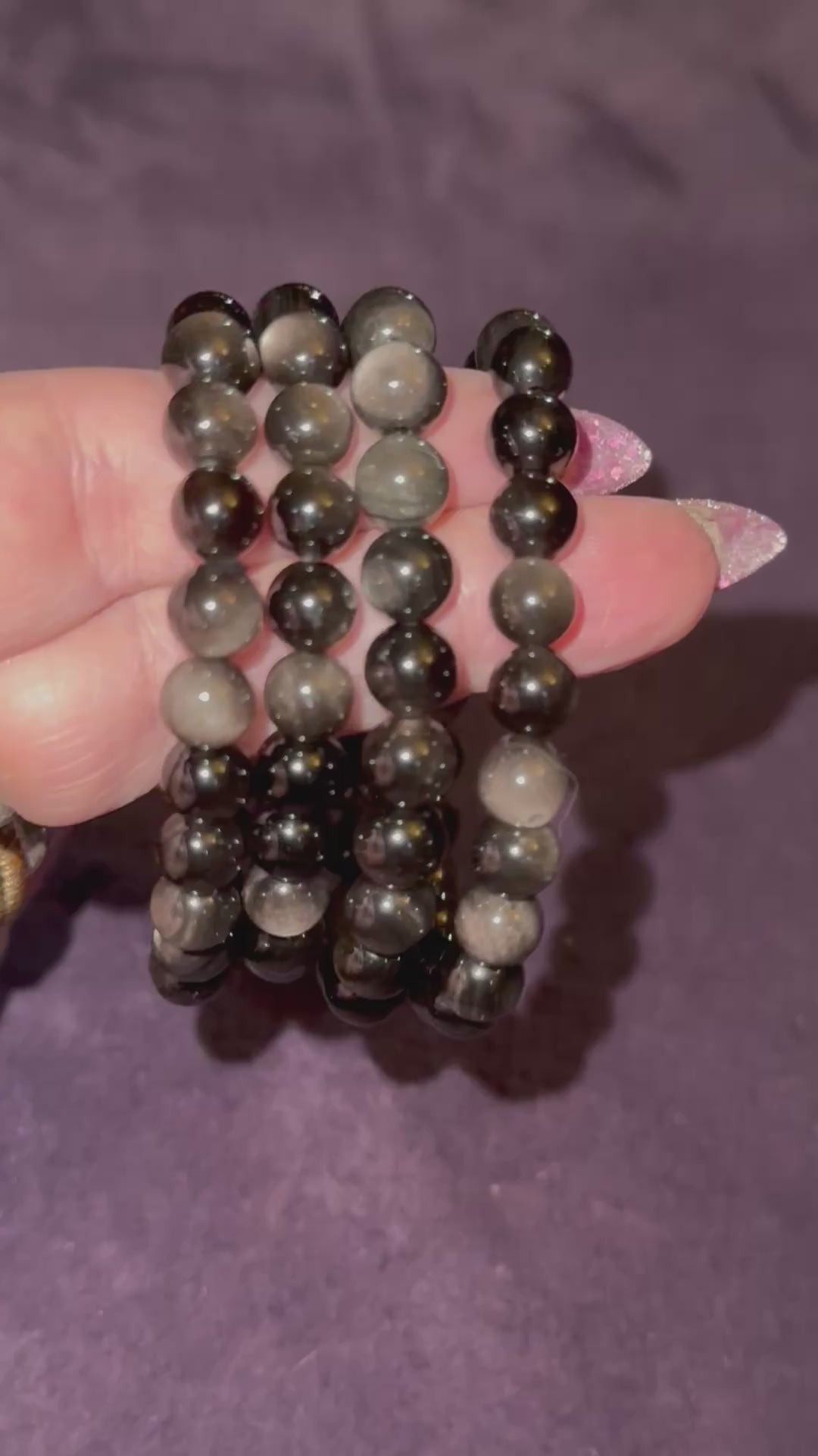 Steal the attention with these Stunning Silver Sheen Black Obsidian Bracelets. High Quality Beads Bring High Quality Flash. We’ve been using the same bead company for 3 years and their quality never disappoints, allowing us to bring that same consistent high quality to you. The Spooky season is coming as is Fall and Winter. These beauties are perfect all year around but show off special when dressing for those holiday parties. Whether elegant or casual they’re sure to capture attention.