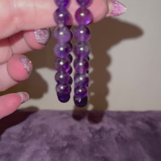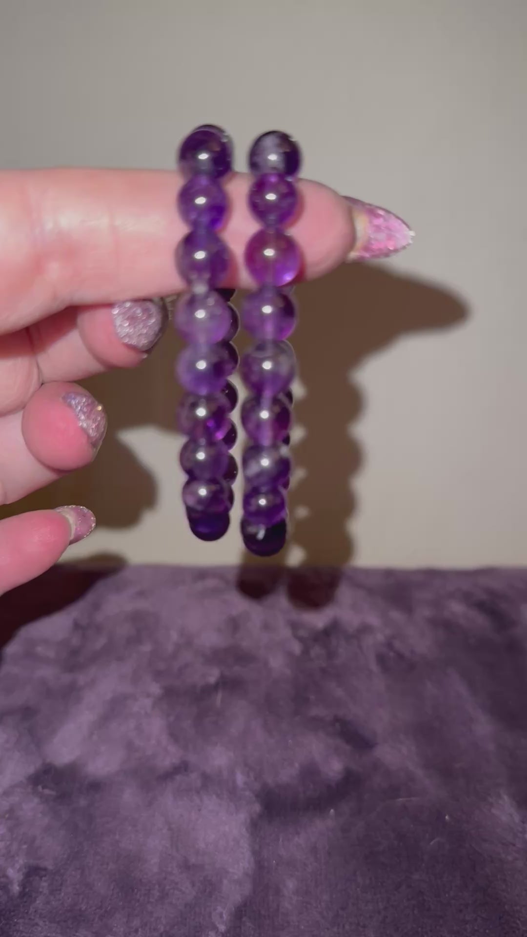 These deep, dark purple 8mm Uruguayan Amethyst bracelets are so stunning, they make you feel amazing no matter what attire you adorn them with. Such vibrant purple when in the bright light yet have an almost black moody look when not. These bracelets are for a smaller wrist at 6 inches and are the last two available in stock. We purchase our bracelets in large bulk so it could be a while before we have them in shop again. These bracelets are discounted for the opening of our new website here on Shopify, but will be priced by value when back in stock. If you’re purchasing one of these as a gift, please visit our Miscellaneous Collection as we carry a nice selection of gift boxes at a very reasonable price.